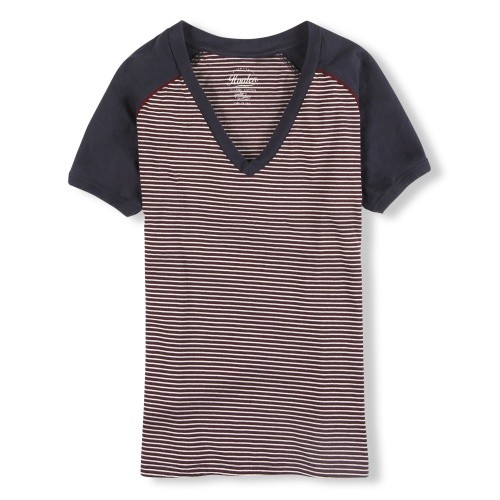 Retro cut, deep V neck, rib at collar and sleeves, raglan sleeves with binding, small ‘Hoalen’ woven label stitched on hip.
