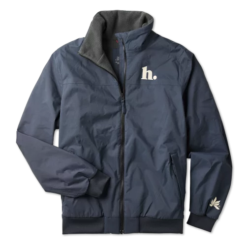 Polar fleece lining on body, neck and sleeves, zipped inside pocket, two zipped outside pockets covered with fabric for extra waterproofing, ribbed cuffs and waistband, Hoalen logo printed on chest and Hoalen Sailing logo printed on back below neck.