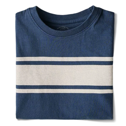 This T-shirt is made from recycled jersey. The material is made from recycled, compressed and shredded garments or pieces of garments, returning them to their simple fiber state before being transformed into yarn. Its greater thickness (with a grammage of 210g/m2 vs. 150g/m2 for a standard t-shirt) means it holds its shape better wash after wash.