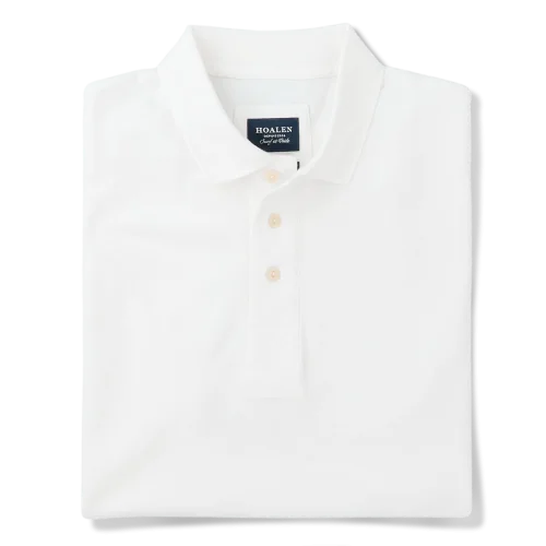 Short sleeves, polo collar, ribbed collar and cuffs, small slits at the bottom on the sides, small Algue Hoalen fabric label sewn onto the sleeve.