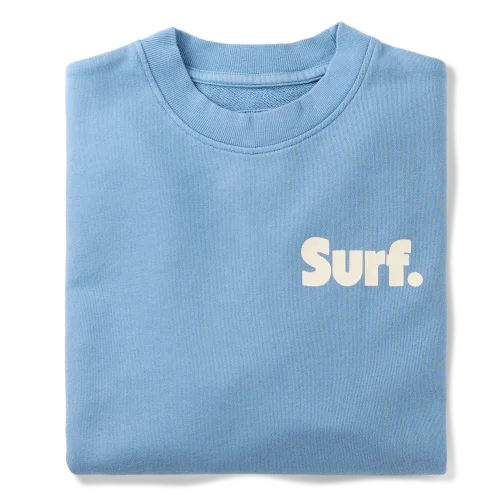 Warm sweatshirt, ribbed finish at cuffs and hem, "Surf" lettering on chest.