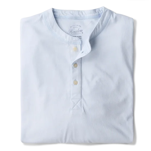 Crew neck with button placket, tonal inserts at elbows, small Hoalen fabric label sewn on the hip.