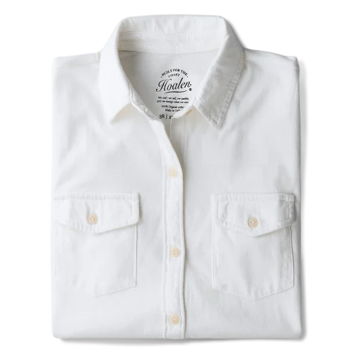 Long sleeves, button-down collar, two chest pockets, Hoalen fabric label sewn on the hip, small "Seabass fish" fabric label sewn on the bottom of the left sleeve.