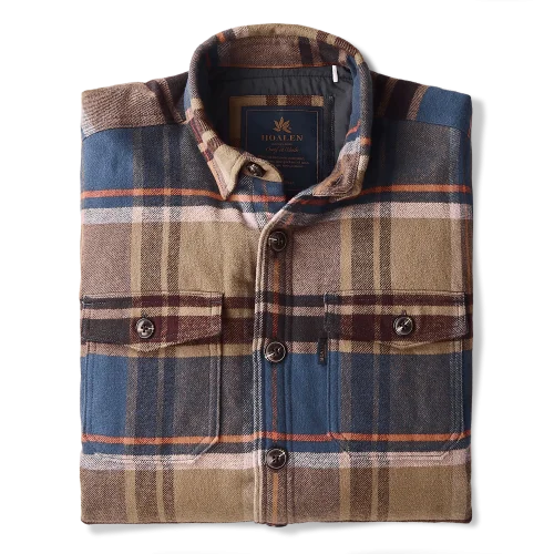 Valter stands out with its blue and brown check pattern, matte imitation horn buttons, patch pockets with flaps, and discreet woven labels. Every detail has been designed to combine durability and understated elegance.