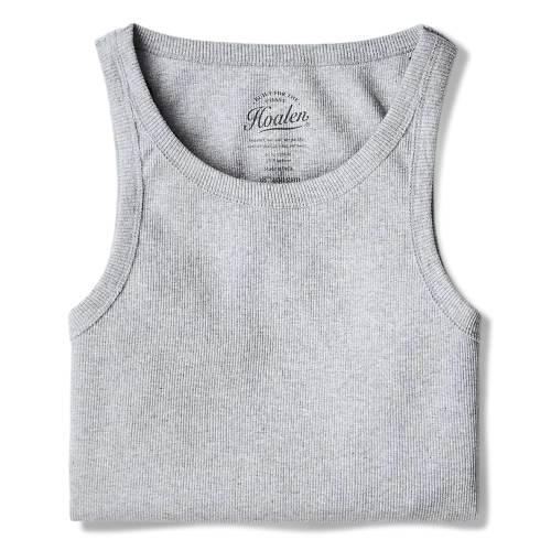 Soft, stretchy jersey. Ribbed piping on scoop neck and armholes. Rounded hem. Tone-on-tone seams. Small Hoalen label sewn on hip.