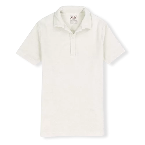 The Osone polo was designed in a soft and comfortable terry jersey. Its timeless Shell White colorway and bouclette texture make it an easy-to-pair piece that combines comfort and elegance.