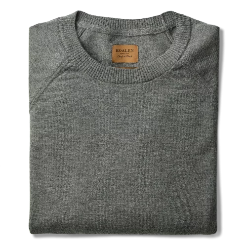Pull col rond, finitions bord-côtes au col, aux manches et à la taille, petite étiquette Hoalen cousue sur la hanche.