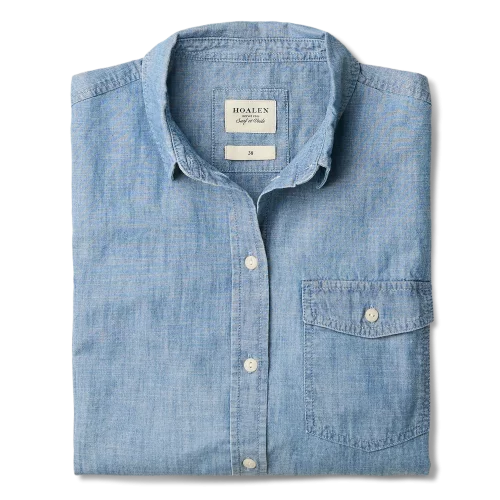 Le chambray est un tissu à armure toile, plus léger que le denim mais tout aussi authentique. Il se distingue par son tissage croisé entre un fil de chaîne teinté et un fil de trame écru, ce qui lui donne cet aspect légèrement chiné et lumineux. Apprécié pour sa fraîcheur, il est idéal pour les journées plus douces ou pour superposer en toute légèreté.