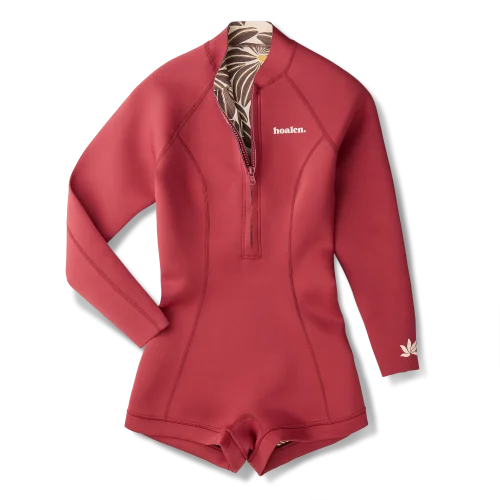 Col montant, manches longues, demi ouverture zippée, coupe shorty, logo Hoalen imprimé sur la poitrine et logo algue Hoalen imprimée sur la manche gauche, intérieur imprimé.