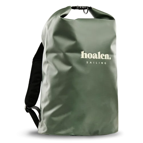 Fermeture étanche à enroulement, bretelles réglables et rembourrées, logo Hoalen sur le devant du sac, logo "Algue " à l'arrière du sac