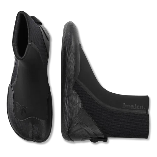 Chaussons en néoprène avec semelle souple et renforcée, offrant une excellente adhérence et de bonnes sensations sur la planche.