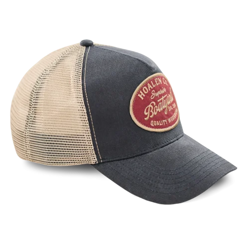 Casquette à 6 panneaux pour le confort, mesh pour la respirabilité, bordure pré-courbée, sangle à pressions réglable à l'arrière, badge brodé « Boatyard » sur le devant, logo brodé "Hoalen " à l'arrière.