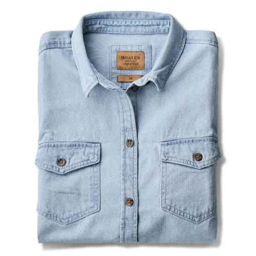 À la fois souple et résistante, la chemise en denim est un basique intemporel du vestiaire féminin. Tout en gardant l'authenticité du tissu, Hoalen a opté pour une pièce sobre qui s'accorde aussi bien avec une tenue décontractée qu'avec une mise plus formelle.
