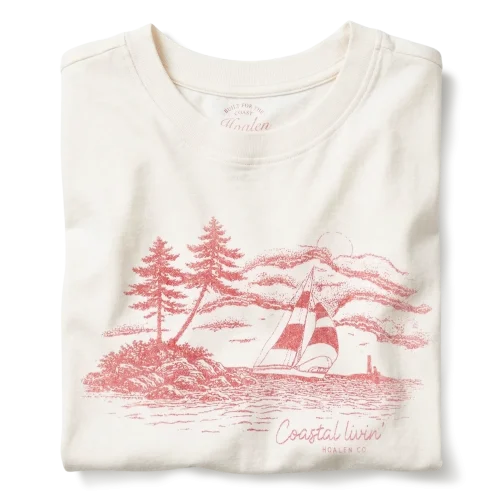 Col rond, bord côte au col, grand graphisme Hoalen imprimée sur la poitrine.