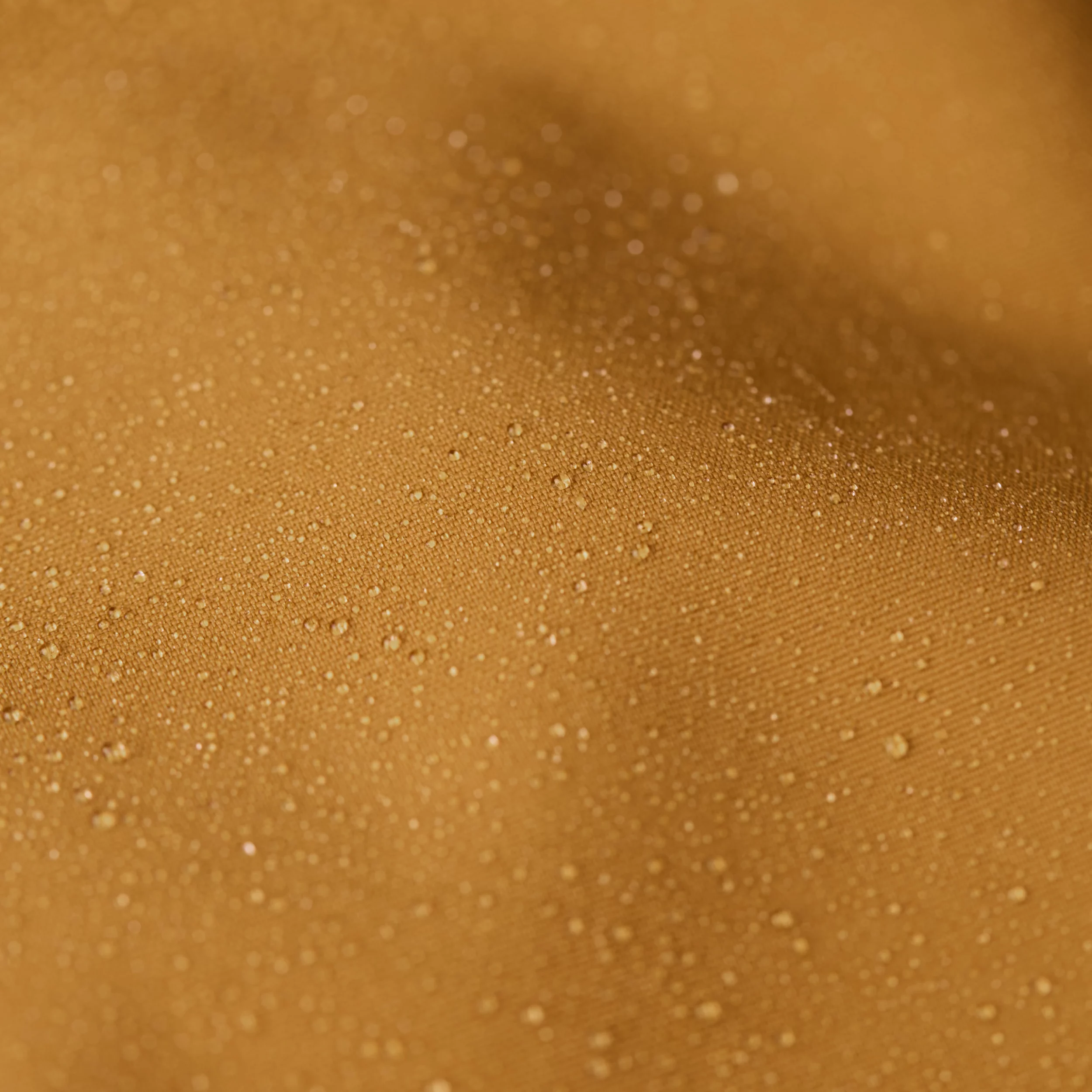 Le tissu a subi le test de la colonne d'eau pour mesurer son imperméabilité. Un tissu est considéré imperméable à partir de 1300 mm. Notre ensemble atteint une résistance de 10 000 mm, assurant une protection optimale tout en restant souple. Les coutures sont étanchées et thermo-collées, et un traitement déperlant sans fluor (PFAS free) renforce la performance.