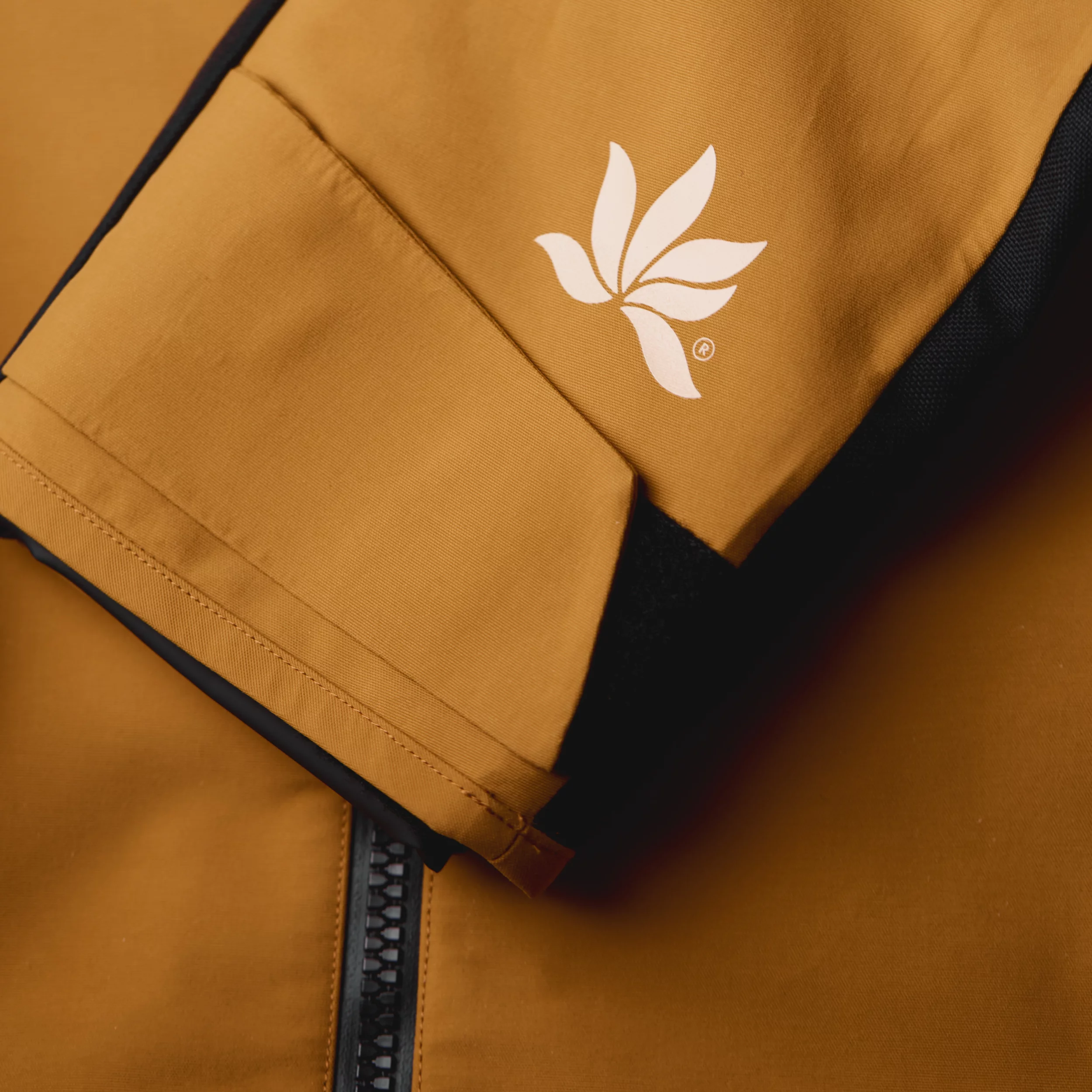 Le choix d'utiliser un tissu laminé 3 couches fut évident. Si on la décompose, cette toile est conçue avec une matière extérieure, une membrane technique et un tricot protecteur. Cette construction assure solidité et performance. Bien que plus coûteuse et plus lourde, avec ce tissu nous choisissons la garantie d’une excellente durabilité dans le temps. Dotée d'une membrane microporeuse, la toile permet à l'aide de petits trous invisibles à l'oeil nu, l'imperméabilité de notre ensemble tout en permettant l'évacuation de la transpiration, pour un confort optimal.