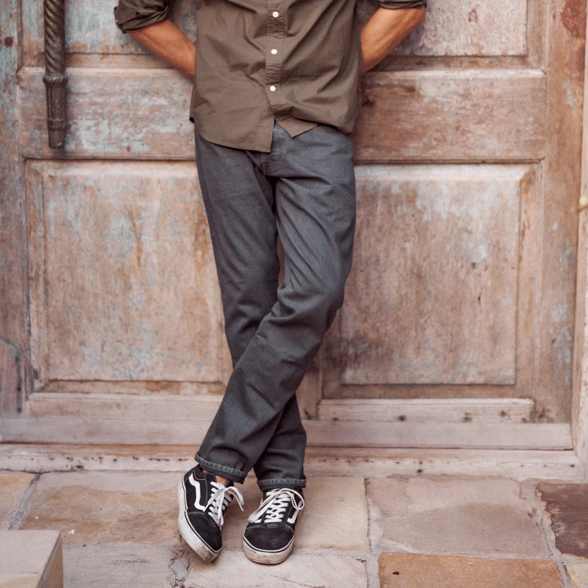 Un jean en denim japonais fil teint de cette qualité n’est pas une pièce commune qui subira le même nettoyage que le reste de votre linge. Sa matière nécessite peu de lavages tout en permettant un usage quotidien sur le long terme. Nous vous conseillons de retarder le premier lavage afin que la toile puisse prendre connaissance de votre morphologie, s'en imprégner pour ainsi devenir votre seconde peau. Ensuite, lavez votre jean à 30°. Privilégiez un lavage à froid sur l’envers, un essorage doux, un séchage non mécanique et un repassage doux.